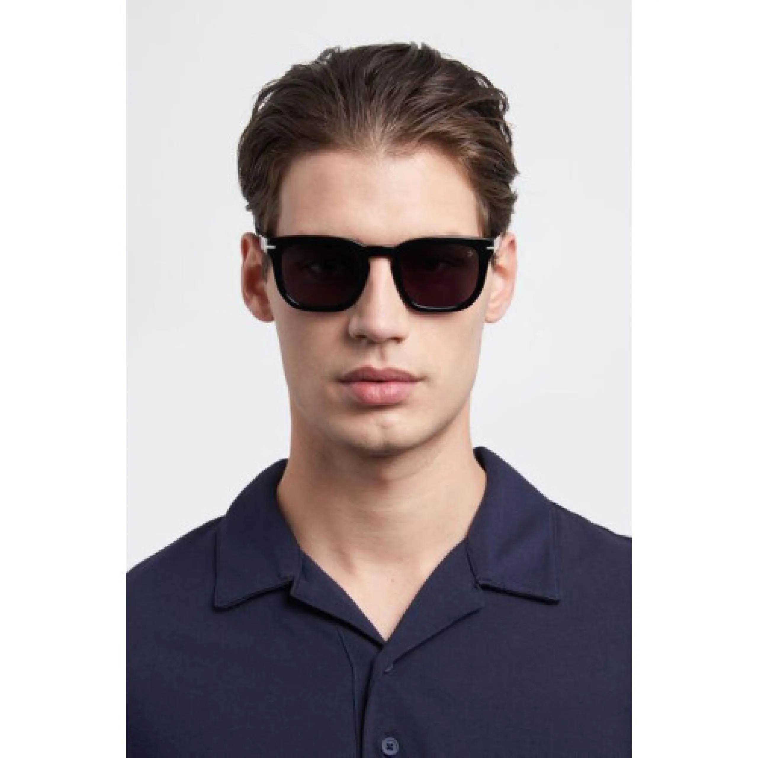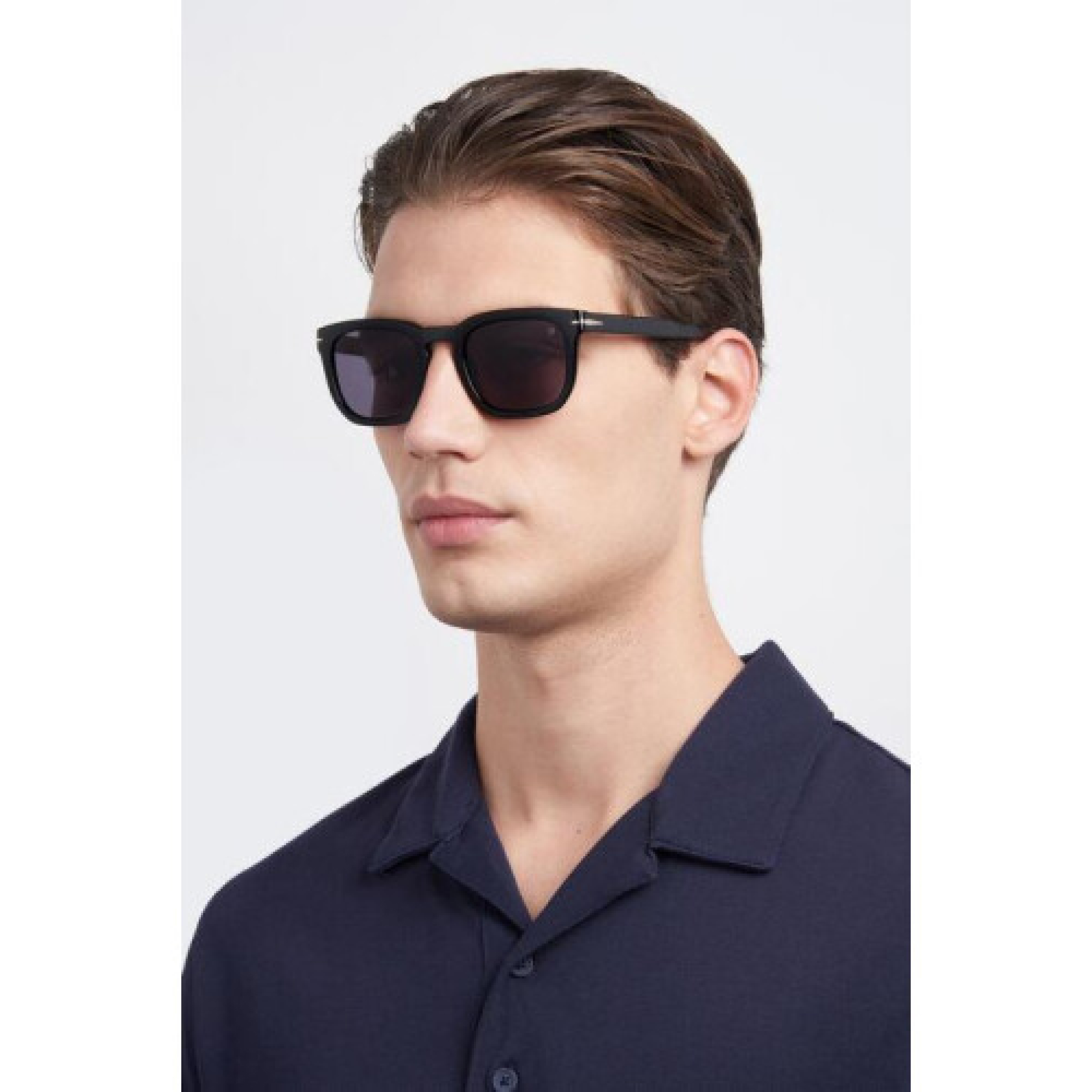 Смелая квадратная оправа из премиального глянцевого ацетата глубокого черного цвета. Эта модель излучает уверенность и мужественность, идеально дополняя как деловой костюм, так и расслабленный повседневный образ.