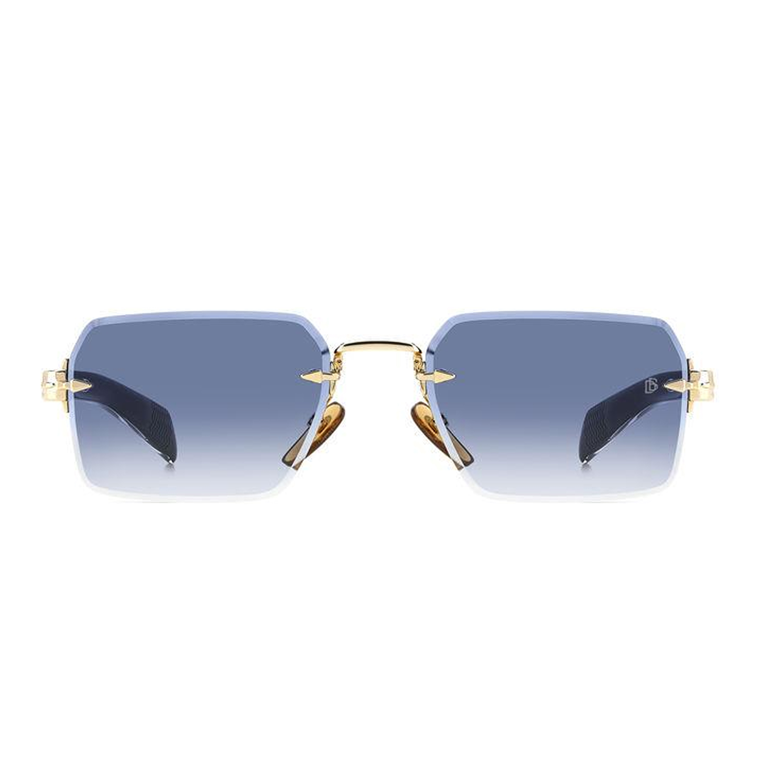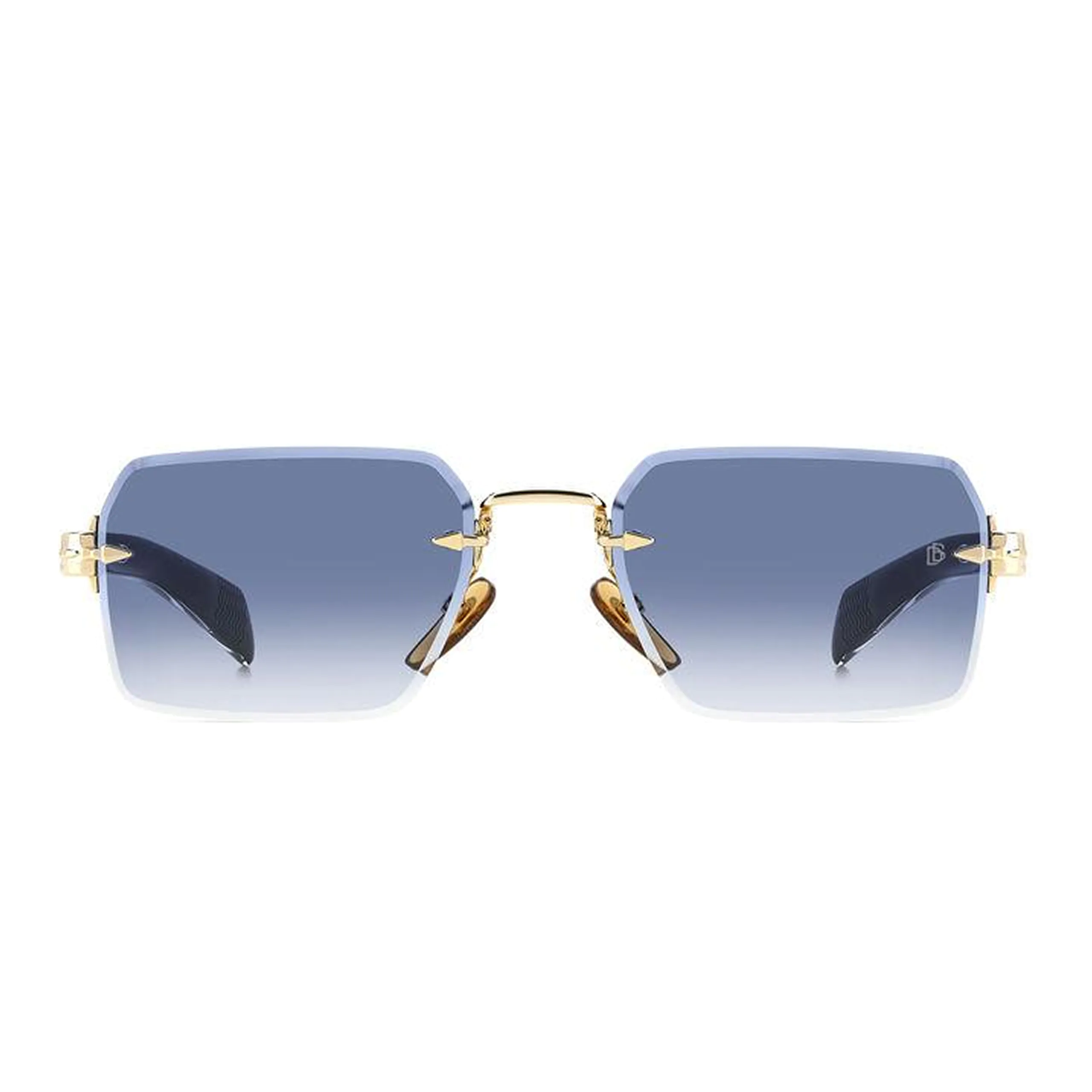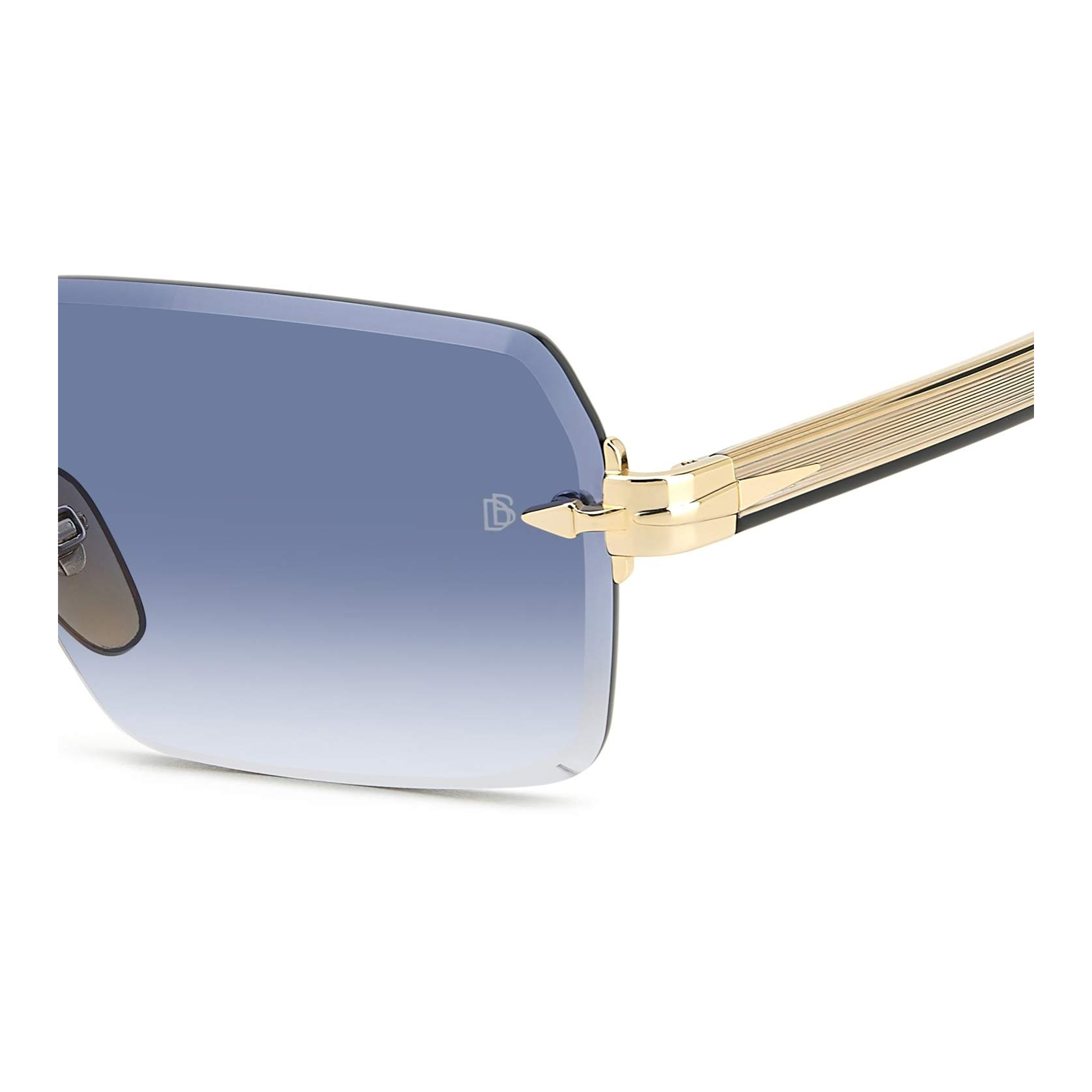 Изысканность модели подчеркивается деталями: мост и крепления выполнены из металла с благородным золотым покрытием (код RHL), которое эффектно контрастирует с прохладным синим градиентом линз. Этот дуэт создает ауру свежести и спокойной роскоши. На шарнире присутствует культовый элемент Talisman — стилизованное крыло, символизирующее свободу и защиту, а на линзе лазером выгравирована монограмма DB, подтверждающая премиальный статус аксессуара. Это идеальный выбор для делового костюма или расслабленного образа в стиле «smart casual».