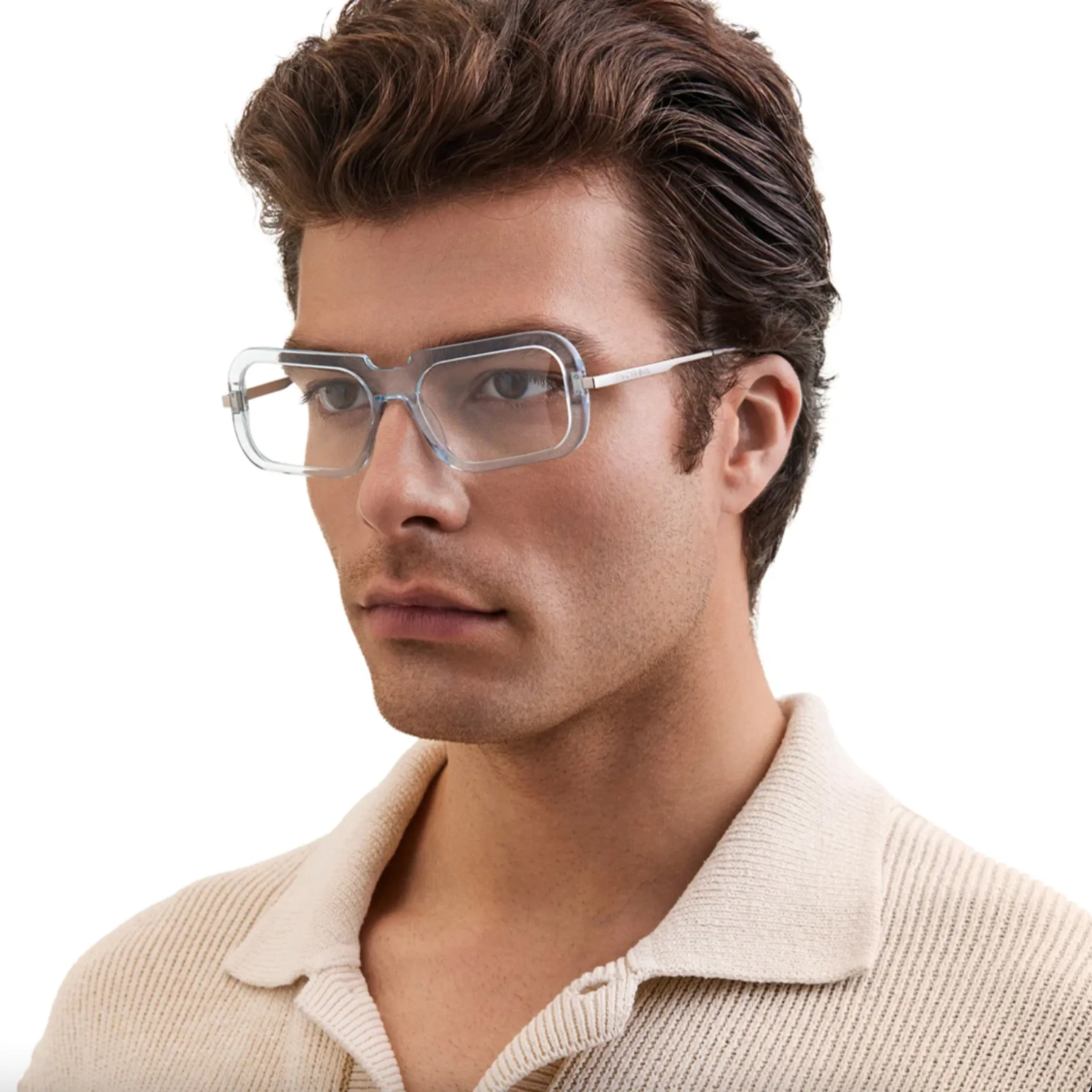 Модель High Line 01 в исполнении Pale Blue — это квинтэссенция «ледяного» футуризма и архитектурной чистоты. Очки воплощают эстетику high-tech: полупрозрачный ацетат небесно-голубого оттенка создает эффект застывшей воды или технического геля, делая массивную прямоугольную форму визуально легкой и воздушной. Этот аксессуар создан для тех, кто воспринимает моду как поле для экспериментов и предпочитает чистые, технологичные линии винтажной ностальгии.