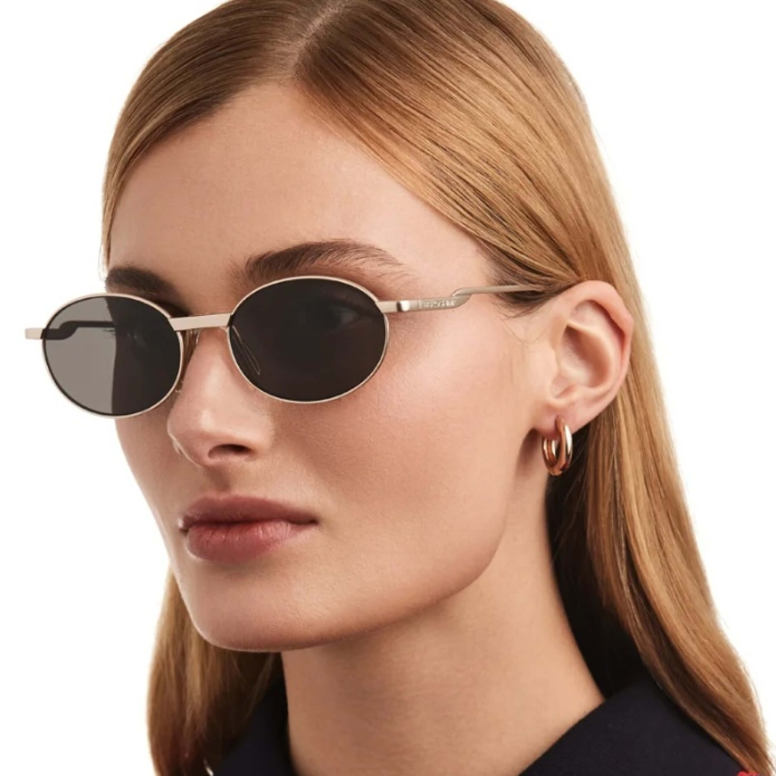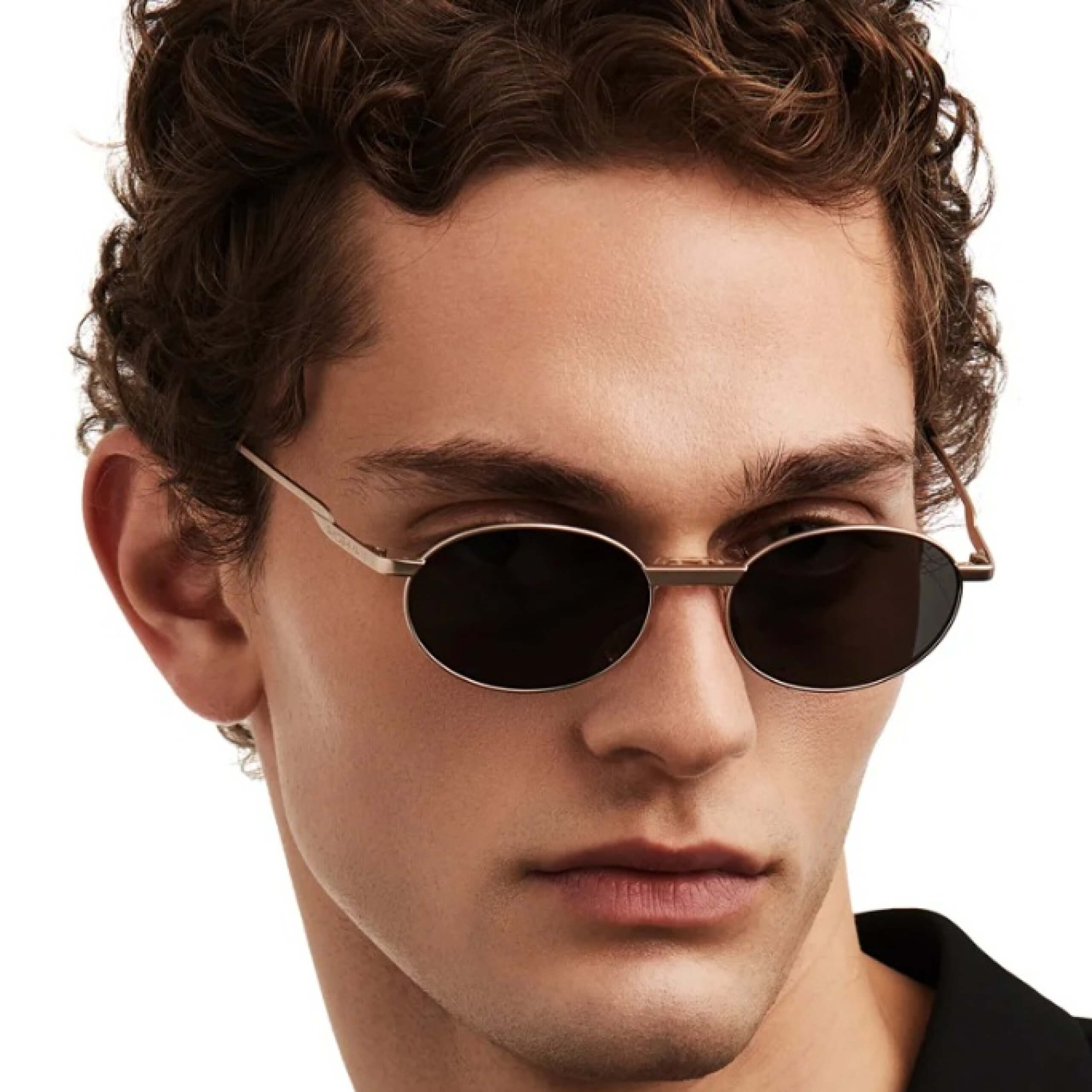 олнцезащитные очки Fakoshima в овальной оправе из лимитированной коллекции. Лёгкий металлический корпус в оттенке «black gold» сочетает чёрные линзы с золотой рамкой, создавая элегантный контраст. Модель отсылает к эстетике 90-х, при этом выглядит современно и стильно.