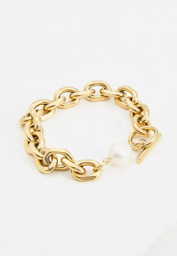 Красивое украшение, браслет Olympia объединяет в себе несколько наших любимых деталей, от коротких звеньев цепи в стиле 80-х до настоящего пресноводного жемчуга и Т-образной застежки. Совместите позолоченный узор из 18-каратного золота с несколькими другими ожерельями или носите его как есть.