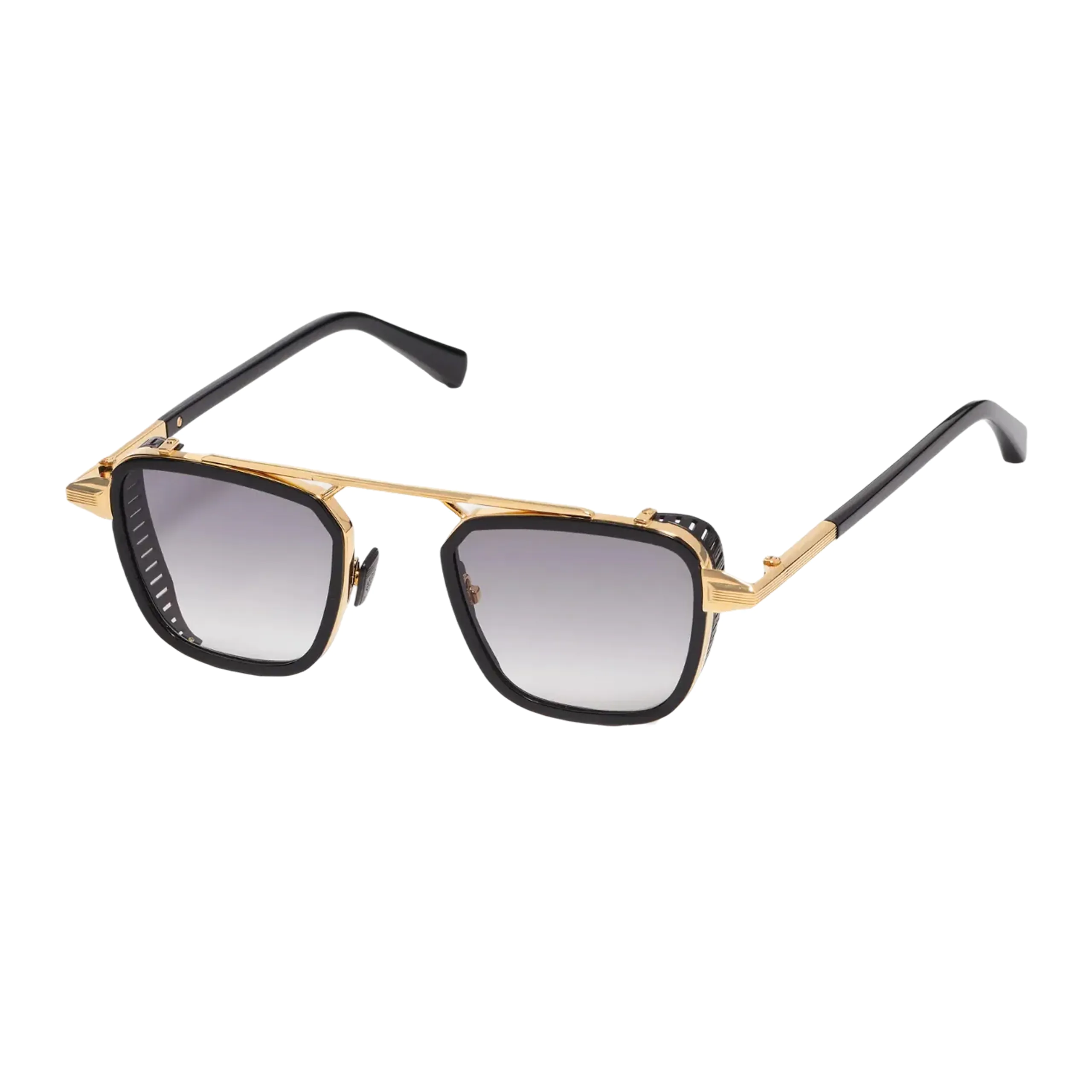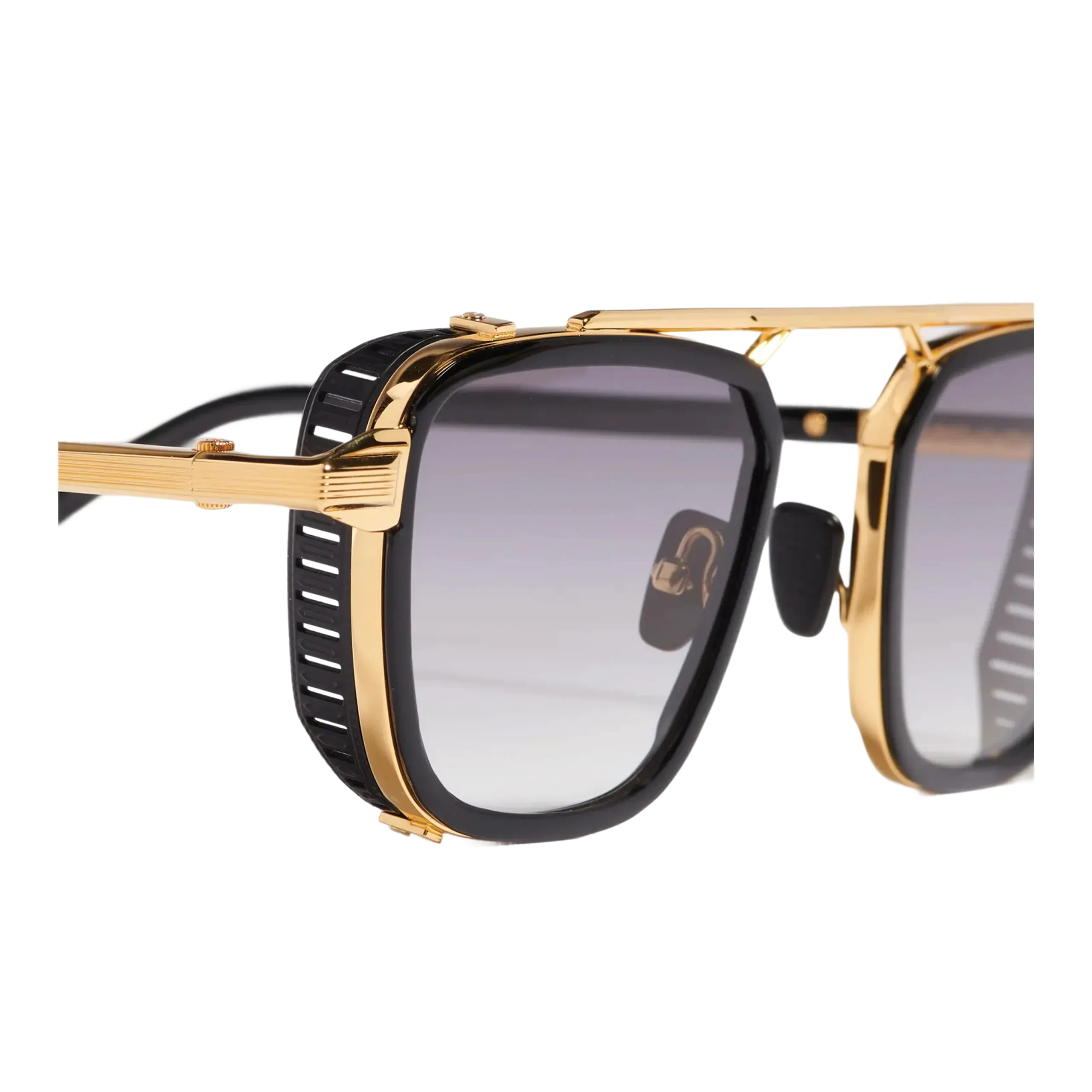 Металлический внутренний каркас изготовлен из нержавеющей стали с жёлтым золотым покрытием толщиной 5 мкм (с ювелирным штампом на внутренней стороне заушника). Боковые щитки и носоупоры выполнены в чёрном «карбон-эффекте». Заушники и ободки — из чёрного ацетата.