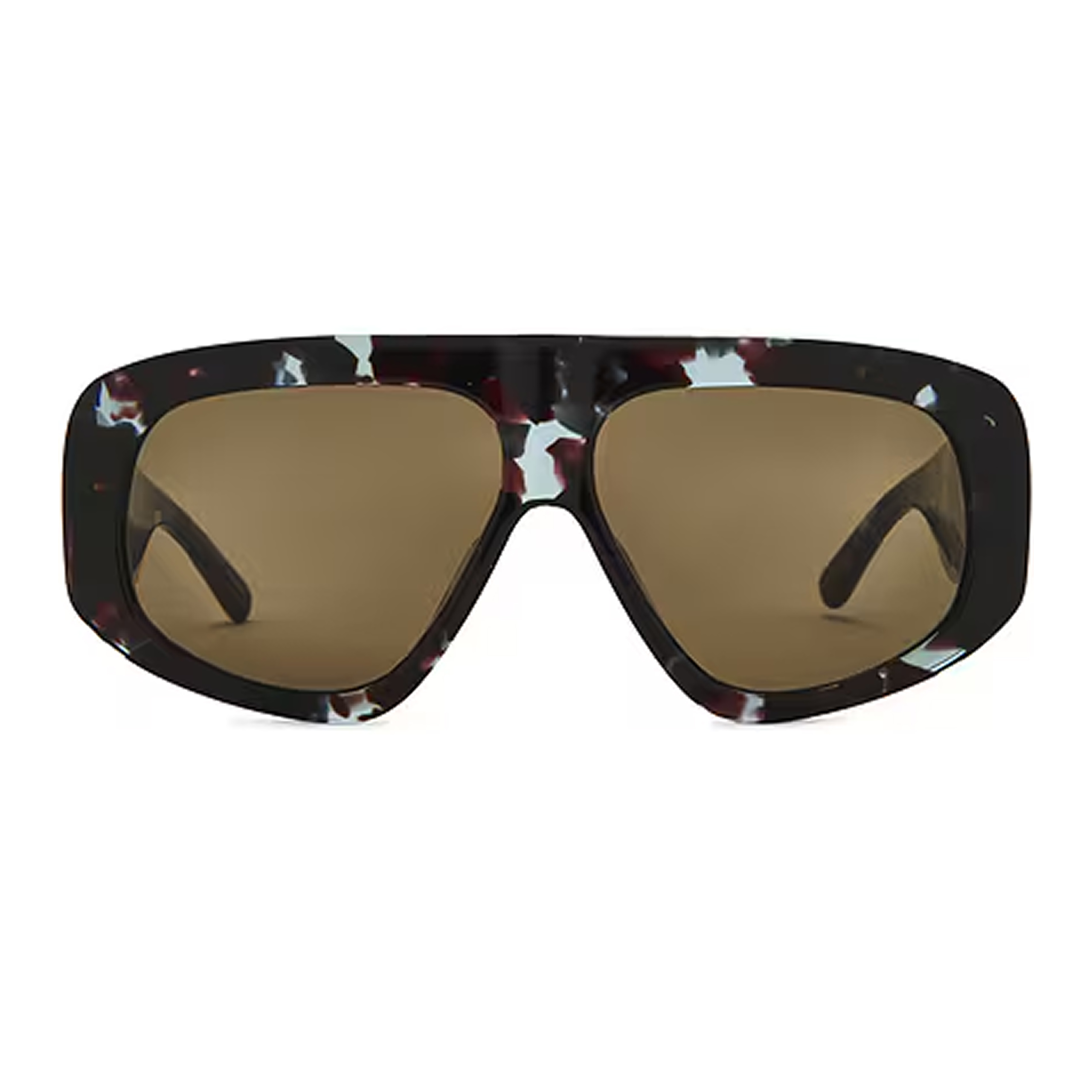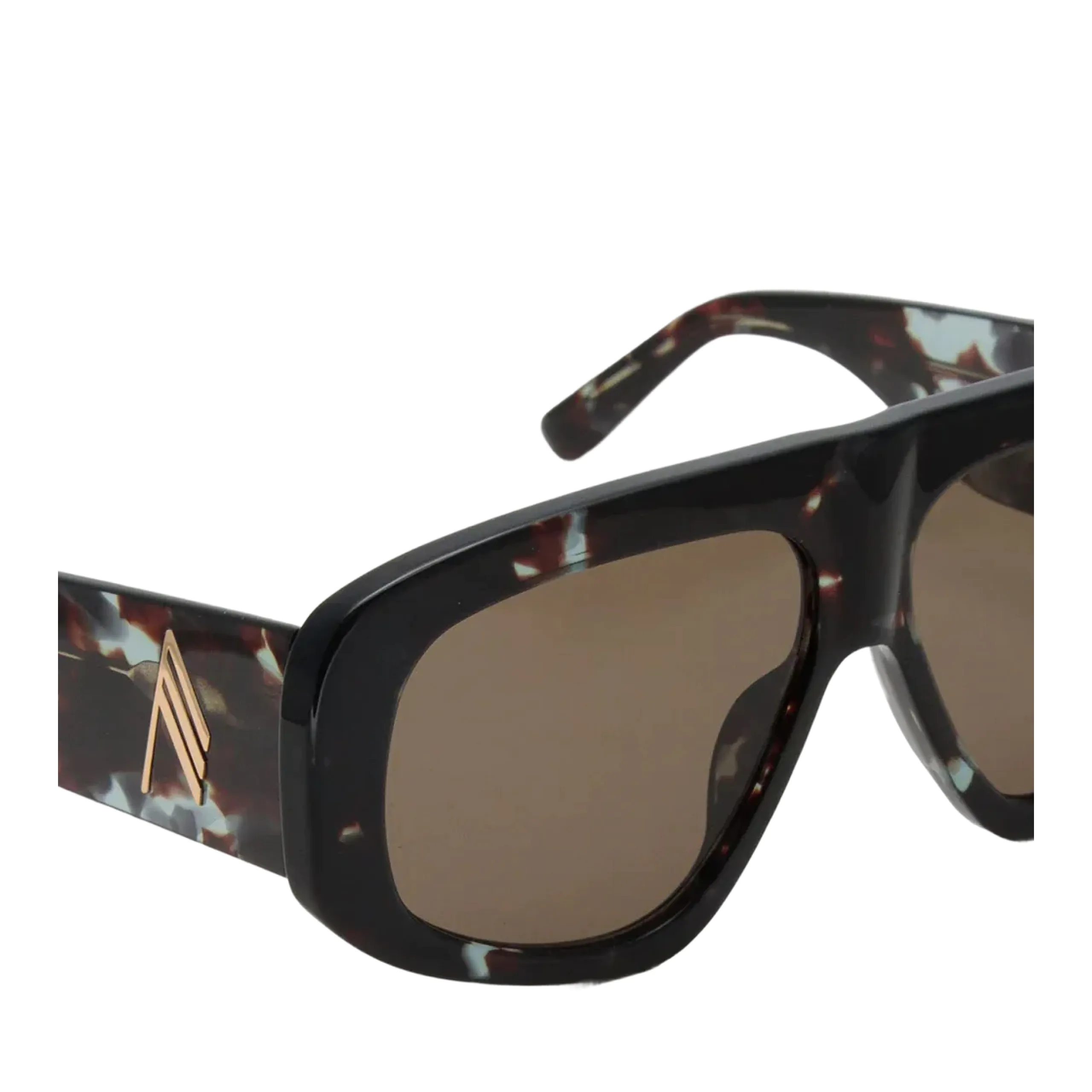 Очки выглядят и ощущаются как настоящий люксовый «тяжеловес»: массивный, идеально отполированный ацетат имеет приятную тактильную плотность. В оттенке C6 этот материал раскрывается по-новому: он ловит свет, становясь менее монументальным, чем черный, и демонстрирует глубину текстуры. Широкие заушники с золотым логотипом «A» работают как ювелирный манжет, завершая этот громкий, подиумный образ.