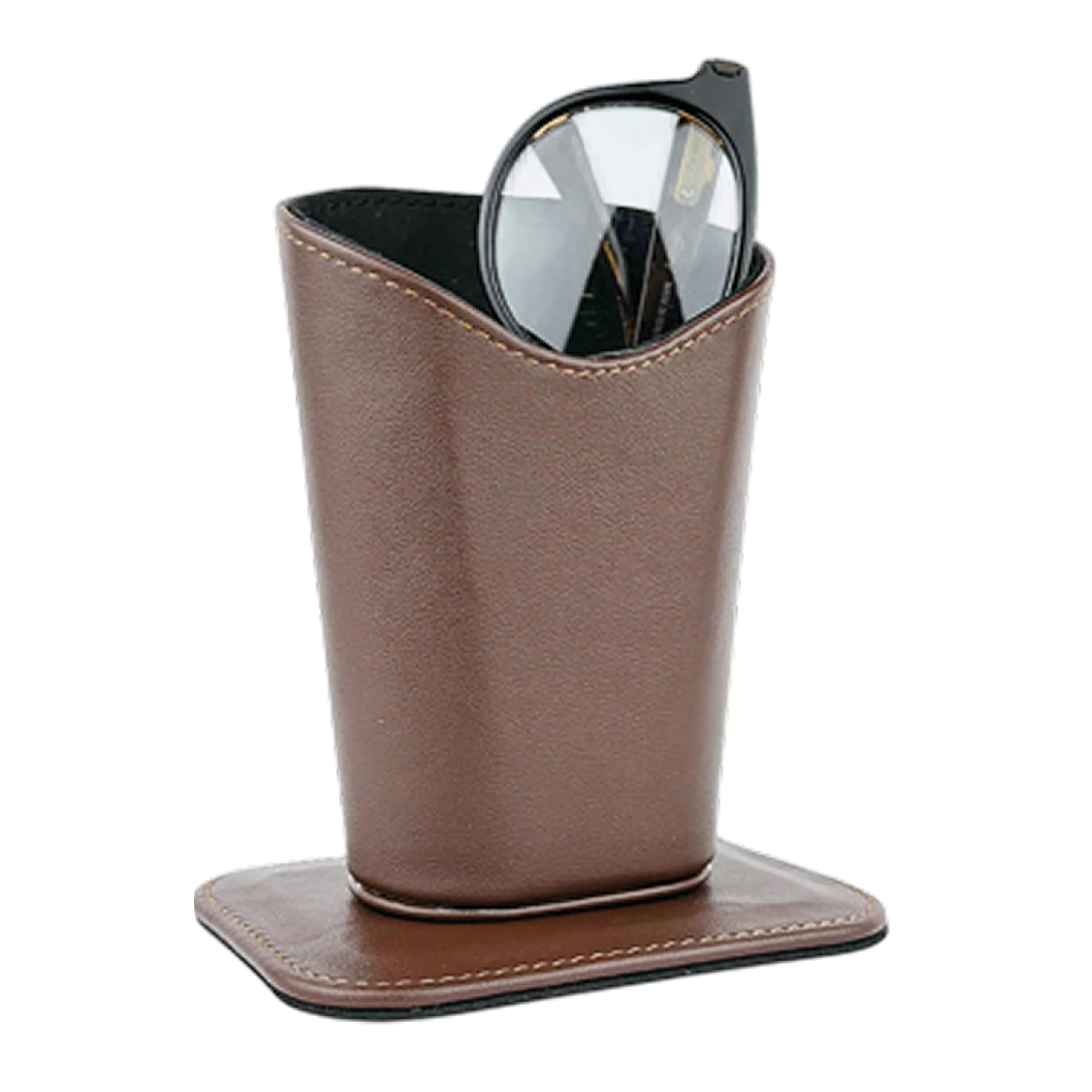Коричневый футляр для очков отличается прочностью и полностью защищает их от царапин.